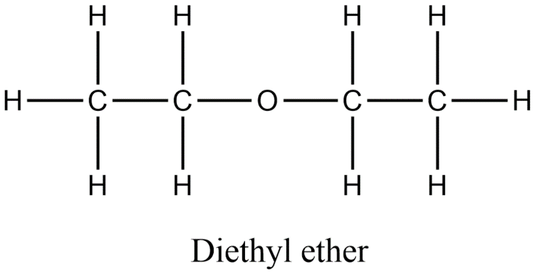 In diethyl ether, Hydrogen bonding does not occur. Although it contains an oxygen atom that is a hydrogen bond acceptor while the oxygen atom is not bonded to any hydrogen atom. The structure of the diethyl ether is given below.