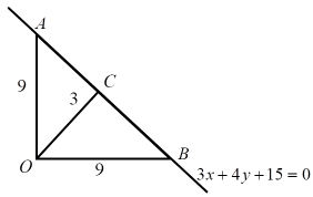 Note: As the origin is one of the vertices of the triangle $OAB$ and the other two points $A, B$ lie on the line $3x + 4y + 15 = 0$, the perpendicular distance of the line from the origin is actually its height and bisects $AB$, that’s why C is the midpoint.