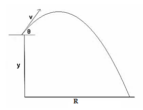 Here R is the range, v is the launching velocity, g is the acceleration due to gravity, y is the difference in height between the starting and ending point from the ground, $\theta $ is the initial angle of launch