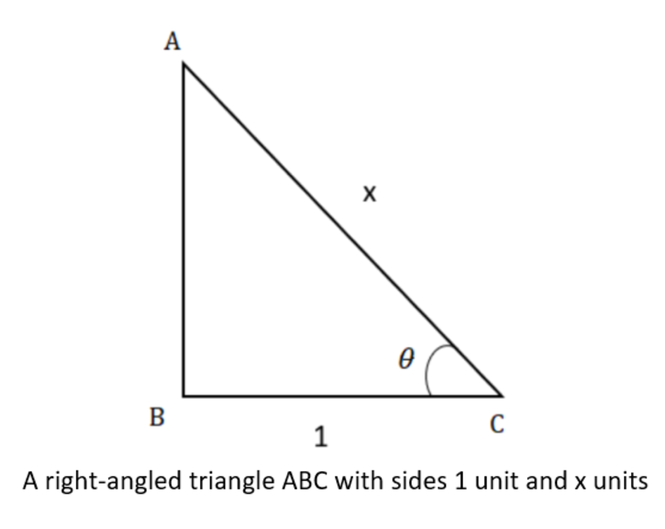 \[\cos \theta = \dfrac{1}{x}\] \[.....\left( 1 \right)\]