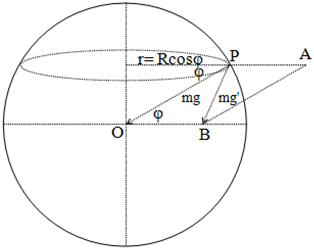 \[g'\, = \,g - {\omega ^2}R\cos \phi \]