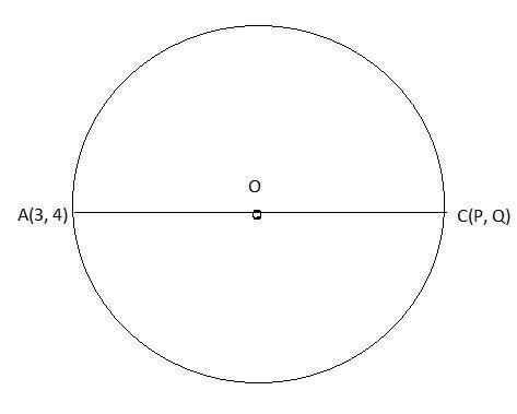 In this problem, we have to find the coordinates of the other end of the circle. Let us assume that the coordinates of the other end of the circle are C (P, Q). As shown in the figure, the diameter of the circle is line AC. Therefore, the midpoint of line AC is Point O (Center of the circle).