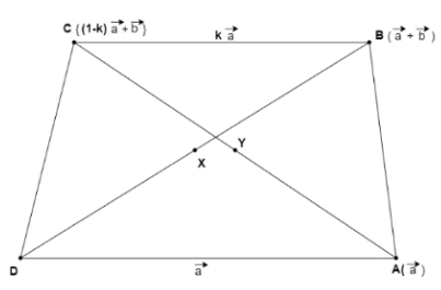 And, the position vector of the point \[Y = \dfrac{{(2 - k)\overrightarrow a + \overrightarrow b }}{2}\] [Since \[\overrightarrow {DC} = \overrightarrow b + (1 - k)\overrightarrow a \] and \[\overrightarrow {DA} = \overrightarrow a \]]