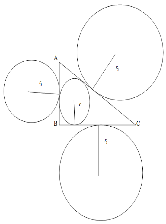 \[r=\dfrac{\Delta }{s},{{r}_{1}}=\dfrac{\Delta }{\left( s-a \right)},{{r}_{2}}=\dfrac{\Delta }{\left( s-b \right)},{{r}_{3}}=\dfrac{\Delta }{\left( s-c \right)}....(1)\]