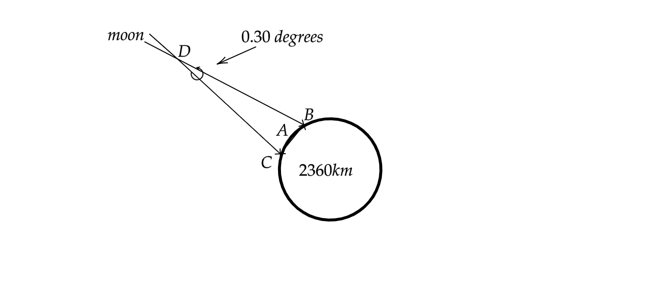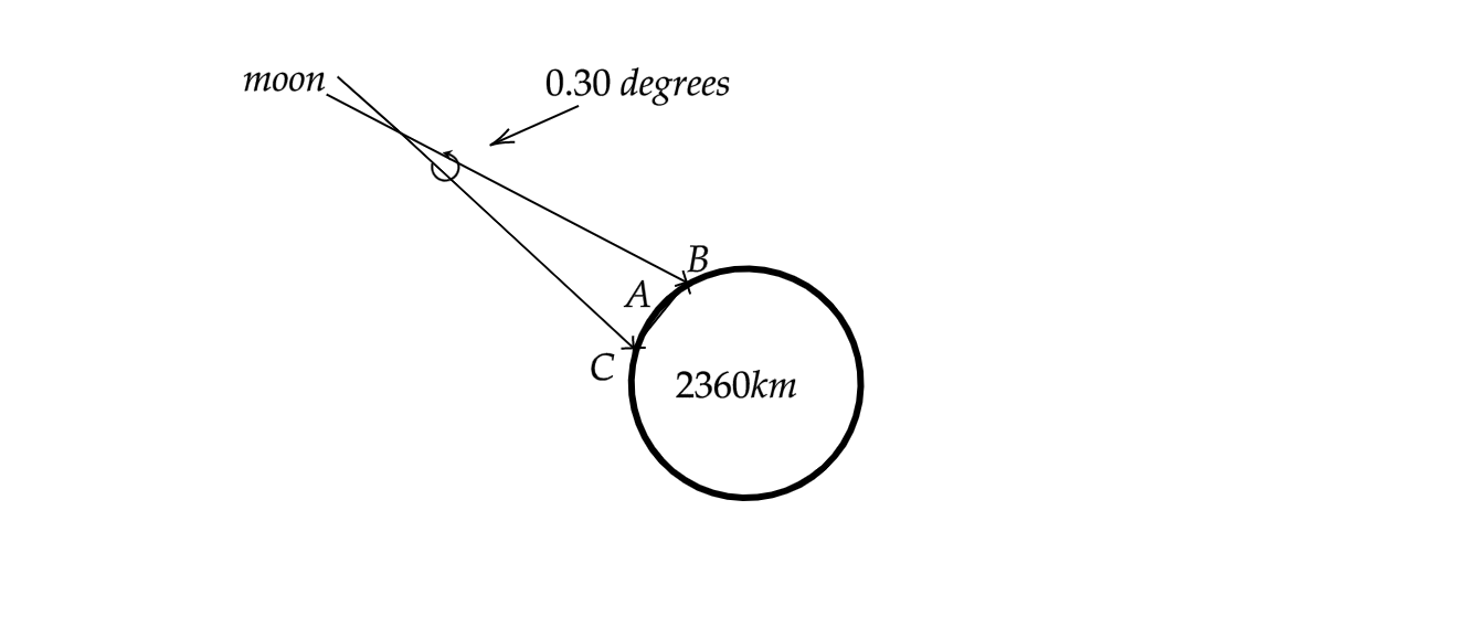 From the given question, we can say that the shift in the angular distance of the moon when viewed from two different vantage points is \[0.3\] degrees. Let this angular shift be \[\theta \].