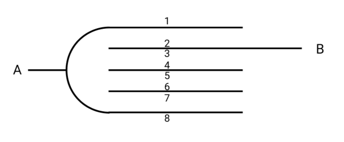 If the area of each plate is $A$ and separation between consecutive plates are $d$, then equivalent capacitance between $A$ and $B$, is