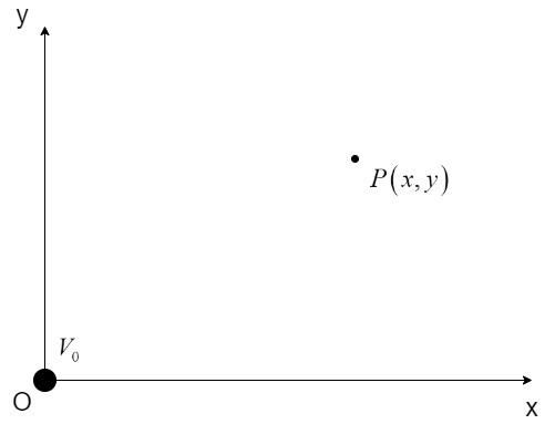 The absolute potential at the point P is given as ${V_P} = x{E_x} + y{E_y}$ . However, the potential at the origin is given as ${V_0}$.
