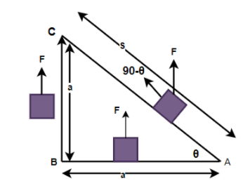 ${W_{AC}} = mg\sin \theta \left( {\because F = mg} \right)$