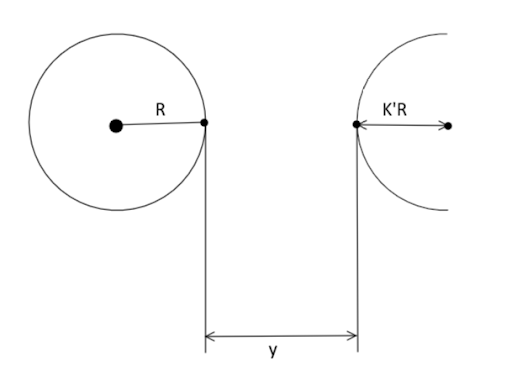 ${F_P} = G\dfrac{{(KM)m}}{{{{(y + K'R)}^2}}}$