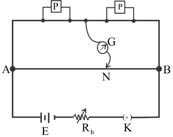 It consists of a long wire of $1m$ which is separated into two sections. In the left section we attach the known resistance and in the right section, we attach the unknown resistance. A jockey is present to detect the balance point. The galvanometer indicates the balance point. The balance point is the point on the wire where the galvanometer shows zero deflection.