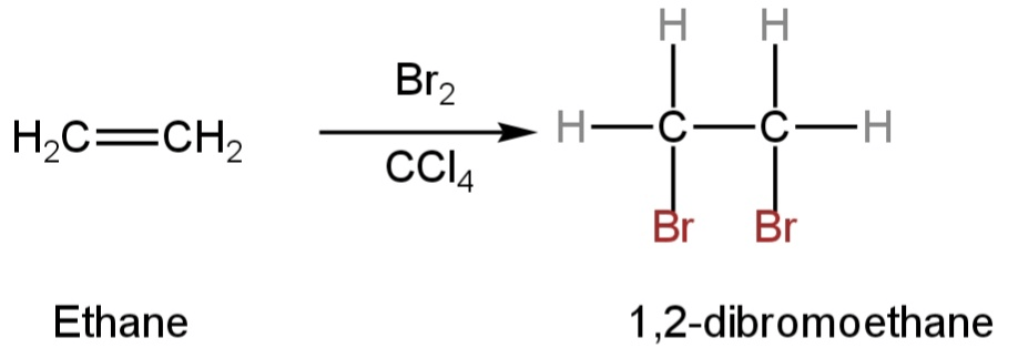 For example, the conversion of ethene to 1,2-dibromoethane.