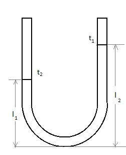In a vertical U-tube containing a liquid, the two arms are maintained at different temperatures \[{t_1}\] and \[{t_2}\]. The liquid columns in the two arms have heights \[{l_1}\] and \[{l_2}\] respectively. The coefficient of volume expansion of liquid is equal to: