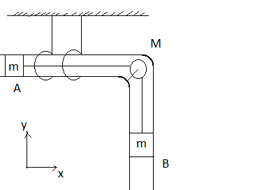 In figure, a hollow tube of mass $M$ is free in horizontal direction. The system is released from rest. There is no friction present. The tube and blocks are taken as a system.