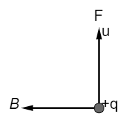 the direction of the magnetic field and force are given. Now if we apply Fleming right-hand rule the direction of the particle velocity will be into the plane of the page.