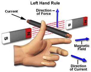 Fleming's left-hand rule for motors which applies for an electric current induces motion in the conductor in the presence of magnetic fields known as Lorentz force.