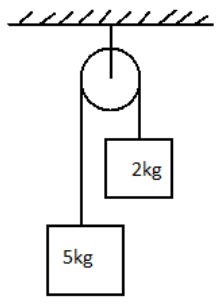 Note: In systems such as this, it is important to mark all forces so as to avoid any silly mistakes. Write units with every data and if required, draw free body diagrams for individual bodies. The string and the pulley are considered massless since information is not provided to suggest otherwise. In ideal pulleys, the tension in both ends of the string is equal. Thus, it becomes simpler to balance tension and force of gravity along a normal reaction and find out either of the quantities.