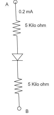 Hint: Use the formula of the ohm’s law, find the potential difference across the circuit. From the obtained answer and the given forward diode voltage, calculate the total potential difference across the point $A$ and $B$ by using the below formula.
