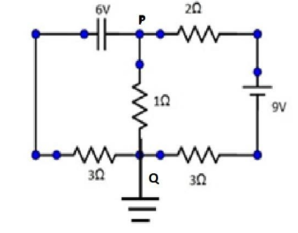 Assuming potential at Q is $V$, we apply KVL loop 1,