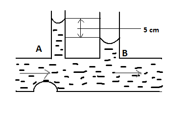 In the diagram shown below, the difference between the tubes of the manometer is 5 cm, the cross-sections at A and B are 6 sq mm and 10 sq mm respectively. The rate at which water flows through the tube is;($g = 10m{\operatorname{s} ^{ - 2}}$)