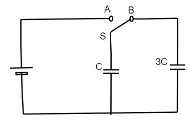 From the given circuit diagram, the capacitance of the $C$ and $3C$ are connected parallel to each other. $A$ and $B$ are two switch connections.