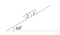 In the figure shown if the friction coefficient of the block $1$ and $2$ with the inclined plane is ${\mu _1} = 0.5$and ${\mu _2} = 0.4$ respectively, then find out the correct statement.