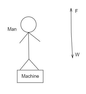 Note: In case if the lift of the weighing machine acts downward, the reading shown by the machine as the weight of the man must be less when compared to that of the true weight of the man. In this case it is a downward lifting machine, it should show a weight less than the true weight of the man.