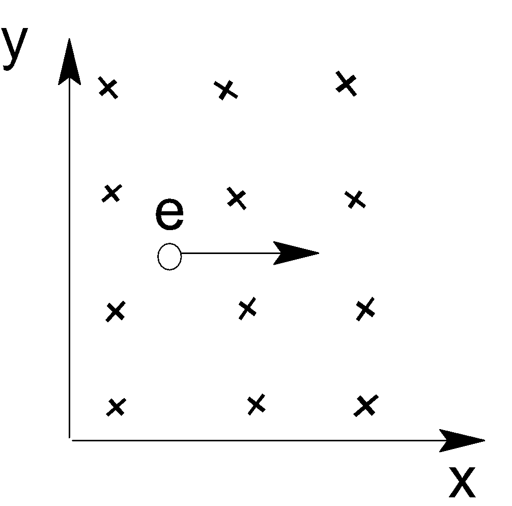 Hint: In the given figure the electron is moving along a positive $x-$direction. And the conventional current moves in the negative $x-$direction. Therefore the deflection of electrons can be determined by Fleming’s left-hand thumb rule.