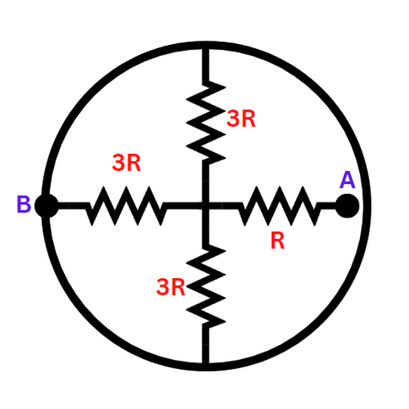 In the network shown below, the ring has zero resistance. The equivalent resistance between the point A and B is