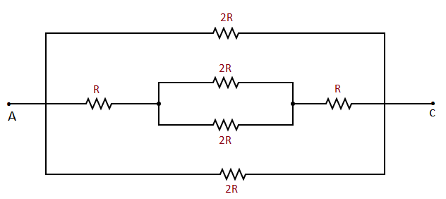 ${R_{EG}} = \dfrac{{\left( {R + R} \right)\left( {R + R} \right)}}{{\left( {R + R} \right) + \left( {R + R} \right)}} = \dfrac{{\left( {2R} \right)\left( {2R} \right)}}{{\left( {2R} \right) + \left( {2R} \right)}}$