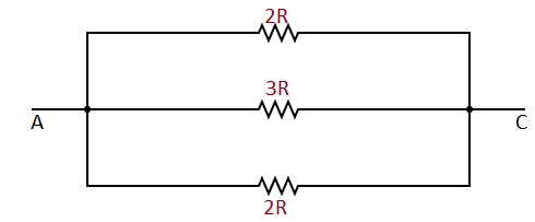 2. If two resistance or impedances are connected in parallel are equal and of the same value. The total or equivalent resistance ${R_T}$ is equal to the half the value of one resistor. That is equal to $\dfrac{R}{2}$ for two resistor in parallel and for three equal resistors connected in parallel is $\dfrac{R}{3}$ and four it is $\dfrac{R}{4}$.
