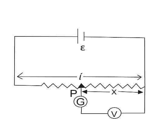 In the potentiometer circuit suppose, $ \in = 12V$, $l = 1{\text{m}}$. If the galvanometer current is zero when $x = 0.75{\text{m}}$