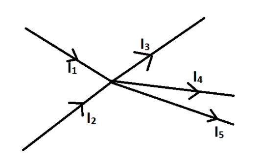 ${I_1} + {I_2} = {I_3} + {I_4} + {I_5}$ ---------(1)