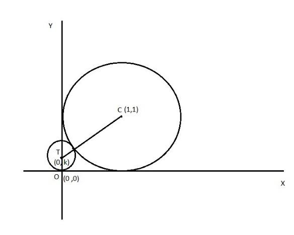 Hint: In this question, the distance between the center of the two circles whose coordinates are (1,1) and (0,k) respectively will be (1 + k). Apply the formula of the distance between the two points to find the distance between the points.