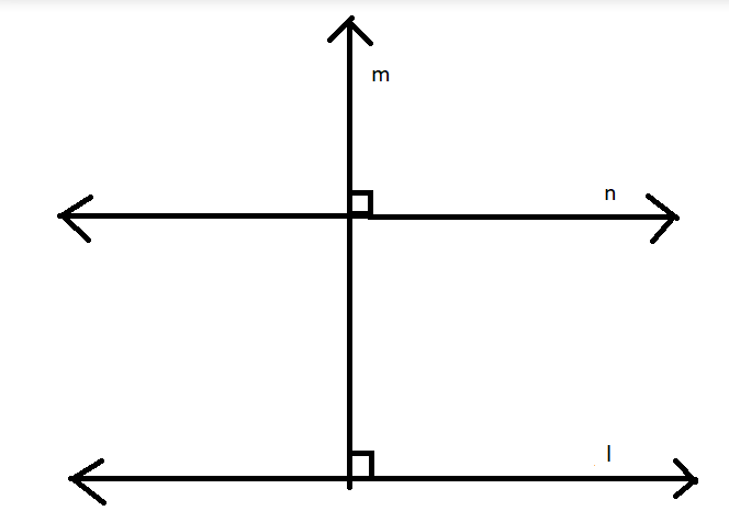 Image: figure shows 2 parallel lines \[l,n\] and \[m\] is perpendicular to \[l,n\].