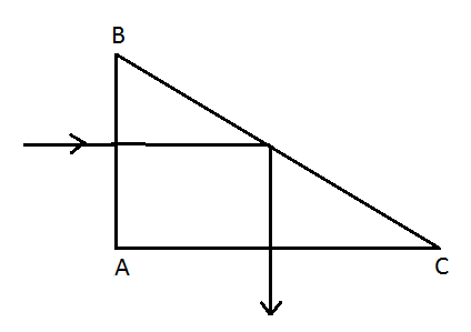 Light enters an isosceles right triangular prism at normal incidence through face AB and undergoes total internal reflection at face BC as shown below. The minimum value of the refractive index of the prism is close to: