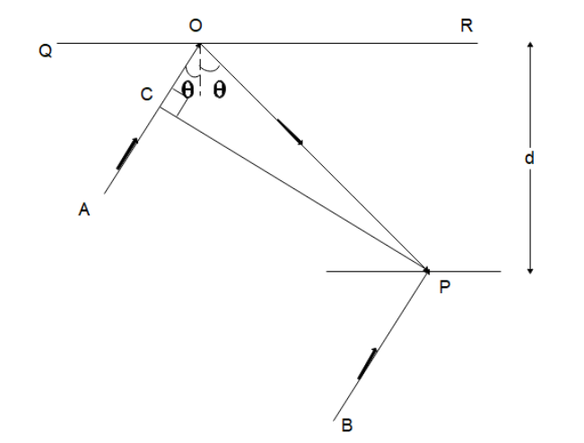 Note: We must be careful to include the reflection of the ray OP and its effect on an additional path difference in the ray. For this, we have assumed that the medium outside OQ is rarer than the medium where the waves are propagating.