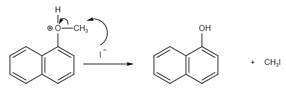 Hint: Here, in this question, 1-methoxy naphthalene is given. It reacts with hydroiodic acid. First of all, hydrogen ions react with 1-methoxy naphthalene followed by iodide ions.
