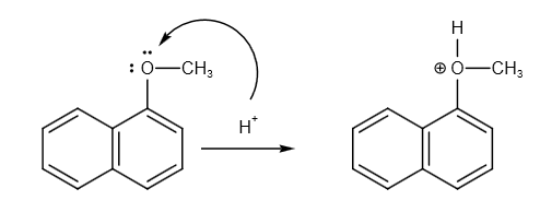 1-methoxy naphthalene reacts with hydrogen ion as follows: