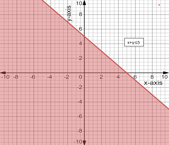 Image: Graph of linear inequality \[x + y \leqslant 5\,\]