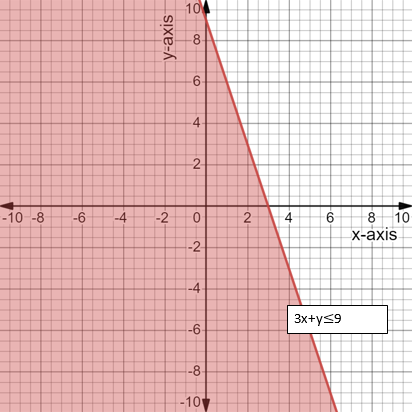 Now we plot \[3x + y \leqslant 9\] on the graph: