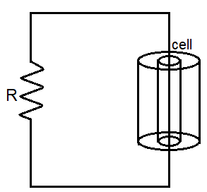 We know that the torch battery has a length l with a thin cylindrical bar of radius ‘a’ and a concentric thin cylindrical shell of radius ‘b’ filled in between with an electrolyte of resistivity \[\rho \], so we can model it as,