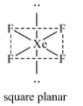 Six orbitals (one 5s+three 5p+two 5d) hybridize to give $s{{p}^{3}}{{d}^{2}}$ hybridization. Four out of the six hybrid orbitals contain F atoms while the two orbitals are occupied by lone pairs. $s{{p}^{3}}{{d}^{2}}$ hybridization leads to octahedral geometry but since the two orbitals occupied by lone pairs, the shape of the molecule is square planar.