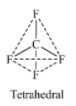 Also, according to VSEPR theory, the four valence electrons on C are shared by four F atoms. These $C-F$ bond pairs repel each other and move apart from one another to attain the shape where the repulsion is the minimum. As a result, the shape obtained is tetrahedral.