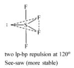 $S{{F}_{4}}$ has 4 bonding pairs of electrons and one lone pair. Lone pair electrons repel the bond pair electrons. Thus, we can have two possible arrangements of the one pair, i.e.