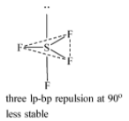 The most stable structure of $S{{F}_{4}}$ is the one where the lone more is present at the equatorial position because there the repulsion is between lone pair and two bond pairs which is less than the repulsion between three lone pairs and bond pair. $S{{F}_{4}}$ has a see-saw type shape.