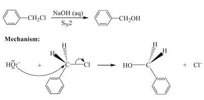 In this mechanism, the nucleophile which is -OH will attack the electrophilic carbon of haloalkane through oxygen and substitutes chloride to give Benzyl alcohol and the reaction is called Nucleophilic substitution reaction in which this benzyl chloride reacts with aqueous NaOH, as a result the NaCl formed will be eliminated and the remaining end product is Benzyl alcohol.