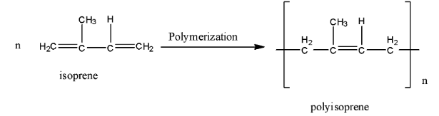 And the polymerization reaction of isoprene to form Polyisoprene is given below: