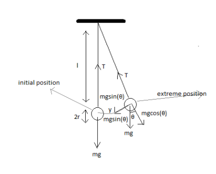 Angle \[\theta \] is the angle made by the initial position with the extreme position. This is also equal to the angle between weight and its horizontal component from internal angles.