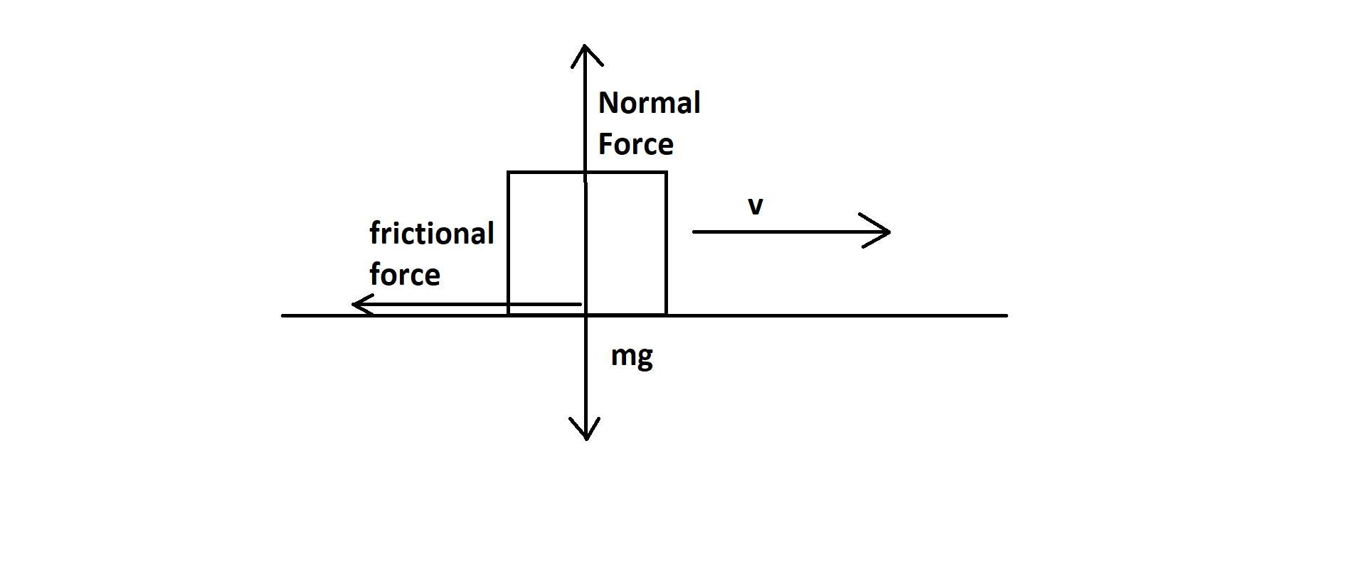 Here we are considering a body of mass m moving with an acceleration and frictional force opposing its motion. friction is a force that resists the sliding of two surfaces against each other. The frictional force is proportional to the normal force, which is the force that is perpendicular to the surfaces. The coefficient of friction, $\mu $, determines how much friction there is between the two surfaces.