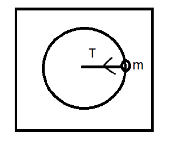 One end of string of length l is connected to a particle of mass ‘$m$’ and the other end is connected to a small peg on a smooth horizontal table. If the particle moves in circle with speed ‘$v$’, the net force on the particle (directed towards center) will be (T represents tension in the string)